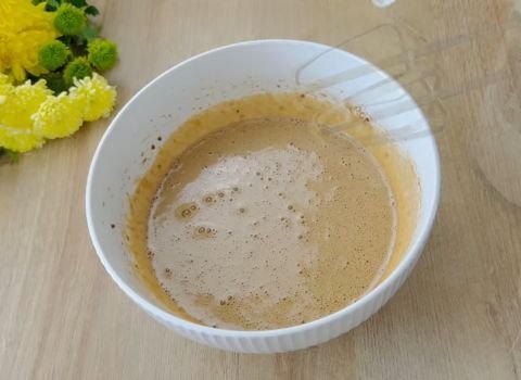 - Add one cup of light brown sugar to the beaten eggs and mix until evenly combined. Then add one cup of granulated white sugar and mix again. The mixture will look slightly sandy, which is normal.
