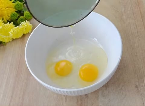 - Crack four eggs directly into a large mixing bowl. Using a fork or whisk, beat the eggs until well combined and slightly frothy. This should take about one minute of vigorous mixing.