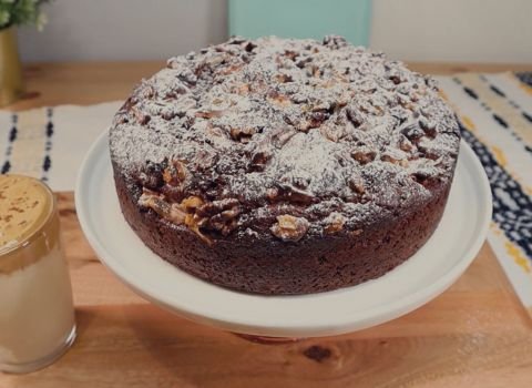 This cake uses warm spices and bakes until firm and soft. Brenda baked hers longer than listed, close to one hour, for best results.