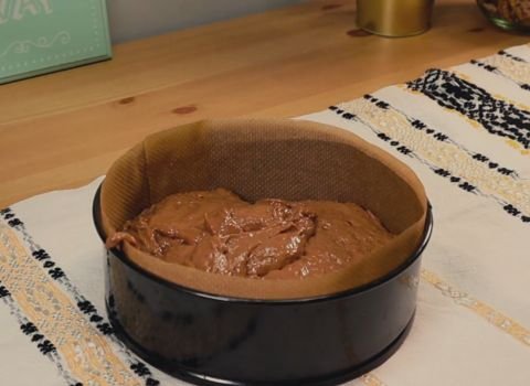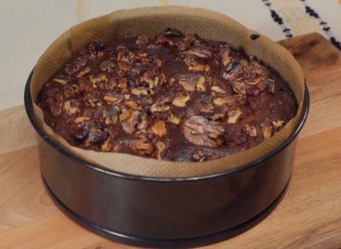 Bake for about 30 minutes, checking for doneness. Some ovens may require up to one hour. Insert a knife into the center – if it comes out clean, the cake is ready.