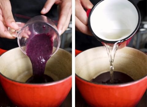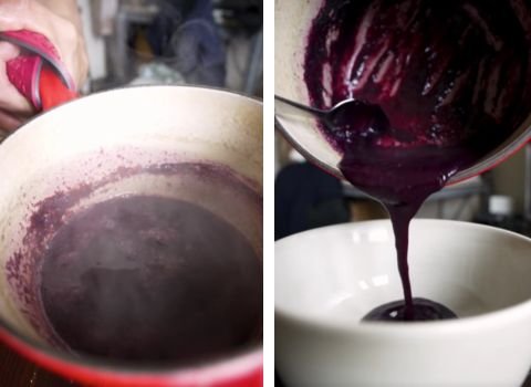 - Pour the strained lavender-infused water into a saucepan. Add the mashed blueberries to the same pot. Place over medium heat and let it gently simmer for 5–7 minutes, stirring sometimes. The mixture should slightly thicken and look rich and syrupy. Remove from heat once ready.