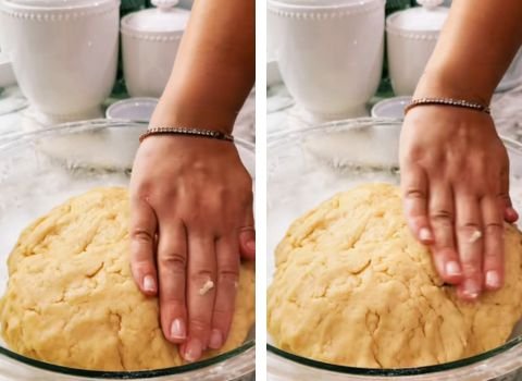 Sticky dough needs a light dust of flour. Stiff dough needs a splash of warm milk. Gentle kneading brings balance without toughness.