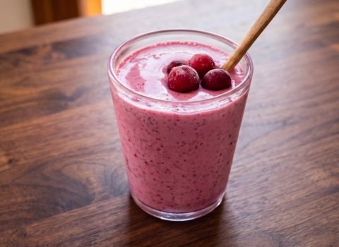 One scoop is enough for a thicker, more filling drink without affecting the cranberry flavor too much.